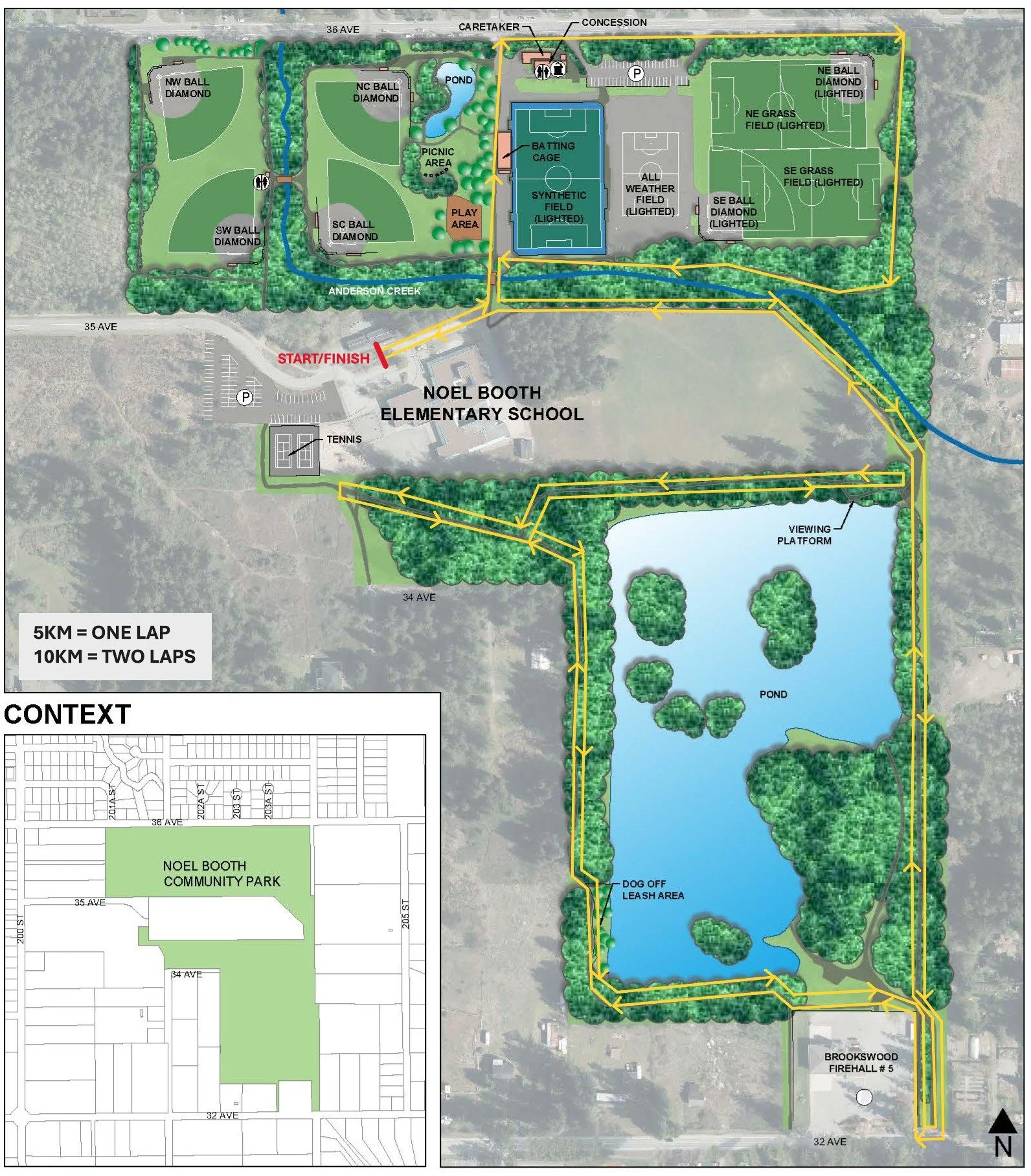 The main event parking lot will be in the parking lot of Noel Booth Elementary School, accessible from 200 Street and 35th Ave. Extra parking can be found on 36 Ave by Noel Booth Community Park. Parking will be very limited with other sporting events happening so be sure to arrive early with adequate time to walk over to the start/finish.